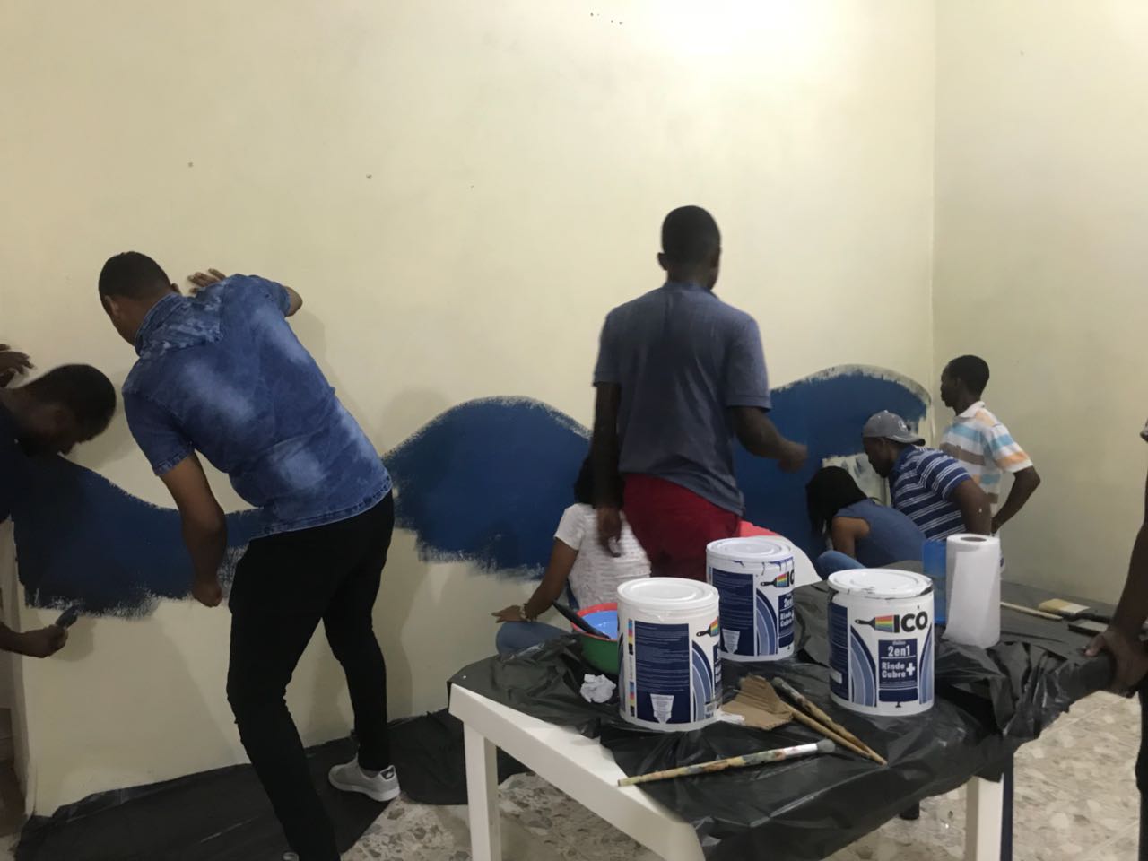 Today was a very chaotic day. We had 72 kids from ages 2-25. Working with this kids was really fun and energetic, it was amazing to see them paint and their creativity flourish. It amazes me how creative this kids are, and how in the moment of creating something they do incredible things. We had the opportunity to paint a mural inside the church today. It was amazing how they each helped and worked as a team to paint the wall. Overall it was an amazing day full of laughter and smiles.