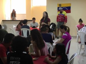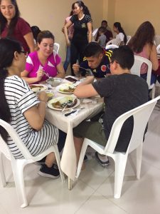 We ate breakfast in the morning and did our devotionals. Later on we divided into three different groups to work with the Venezuelans. We taught English, played different sports, and helped the musicians who work at the traffic lights. For lunch we prepared the Venezuelan “Pabellón,” a typical plate of their country. Our students served them the food and they had a great time eating.