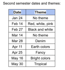 Star Days are special days when students are able to come to school out of uniform, according to the theme of the day, if they have purchased a Star Day pass. Cost is $10.000 for a semester pass or $2.000 for a daily pass on individual days. 1st to 4th grade students can only buy the semester pass. MS and HS students can buy the semester pass or daily passes. This is a fundraiser for HS Student Council – StuCo. 1st to 4th grade parents will receive a flier to pay for a Star Day pass for all of 2nd semester for their children.