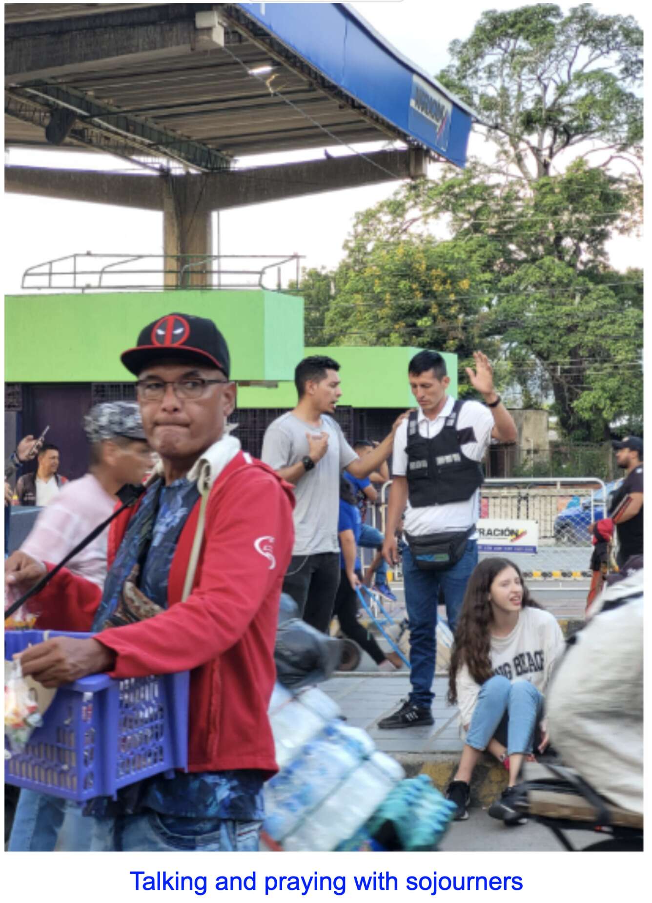 Yesterday afternoon, we carried our sound equipment to the border between Venezuela and Colombia to play worship music along the path where thousands of people cross every day. It was a heavy experience. I vividly remember watching a father say goodbye to his two sons, both no more than eight years old, as the children walked into Venezuela and the father stayed behind. The elder son didn’t stop looking back until they were too far away to see. My heart broke for the countless other stories like theirs. But in the midst of loss and hard goodbyes, the hope of the gospel flourished. I will never forget looking up from my music to see that every one of our 14 students who were within eyesight were talking or praying with someone. I think back to the nervous hesitancy of our first night inviting people to church in the park. If we had come to the border on that day, I don’t think this final picture would’ve happened. Our team has grown so much in empathy and in the courage to show even strangers that we see them and we love them as Jesus does.