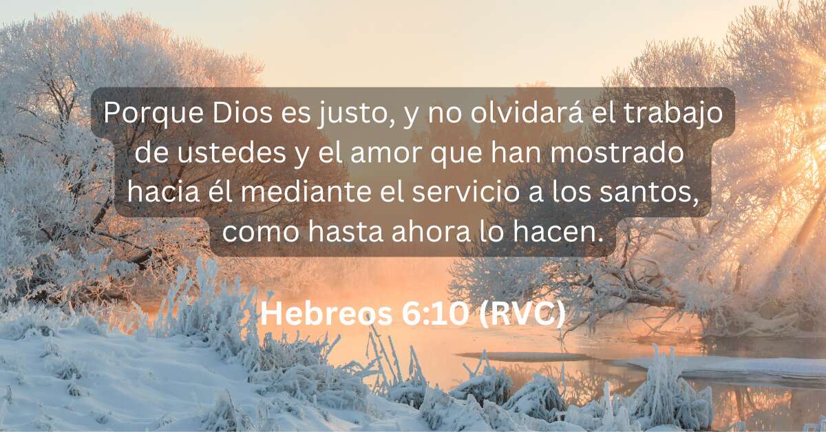 El lo ha visto y será justo en recompensar, en bendecir, en dar la cosecha a todo lo que hemos sembrado en sus santos. No desmayemos y sigamos mostrando el amor a Dios a través de nuestro servicio a sus hijos, y como dice el apóstol Pablo, nuestro trabajo en el Señor no es en vano, sea que sirvamos a nuestra familia o otras personas a nuestro alrededor. Dios lo ve y será justo en recompensar.