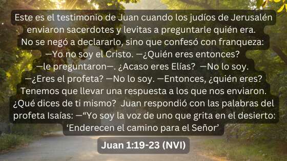 Juan el Bautista sabía quién era y cuál era su misión. Él no dejó que las opiniones y presión de los demás acerca de él, lo desviaran de su tarea ni lo sedujeran para ser reconocido. Él respondió con total claridad: