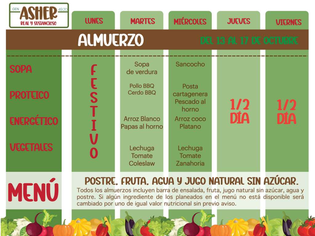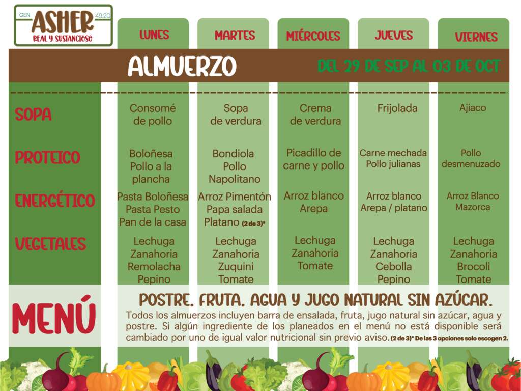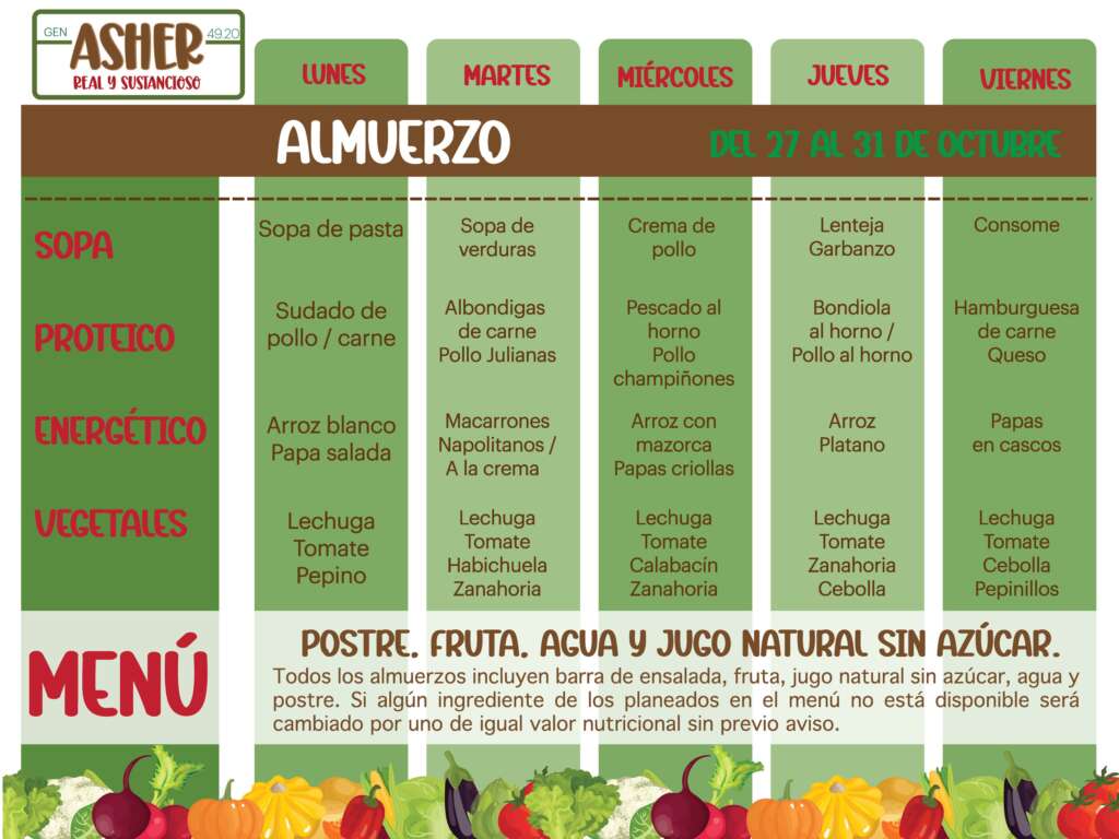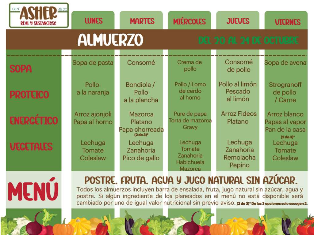 ECA’s contracted provider for food service is ASHER Productos Alimenticios S.A.S.