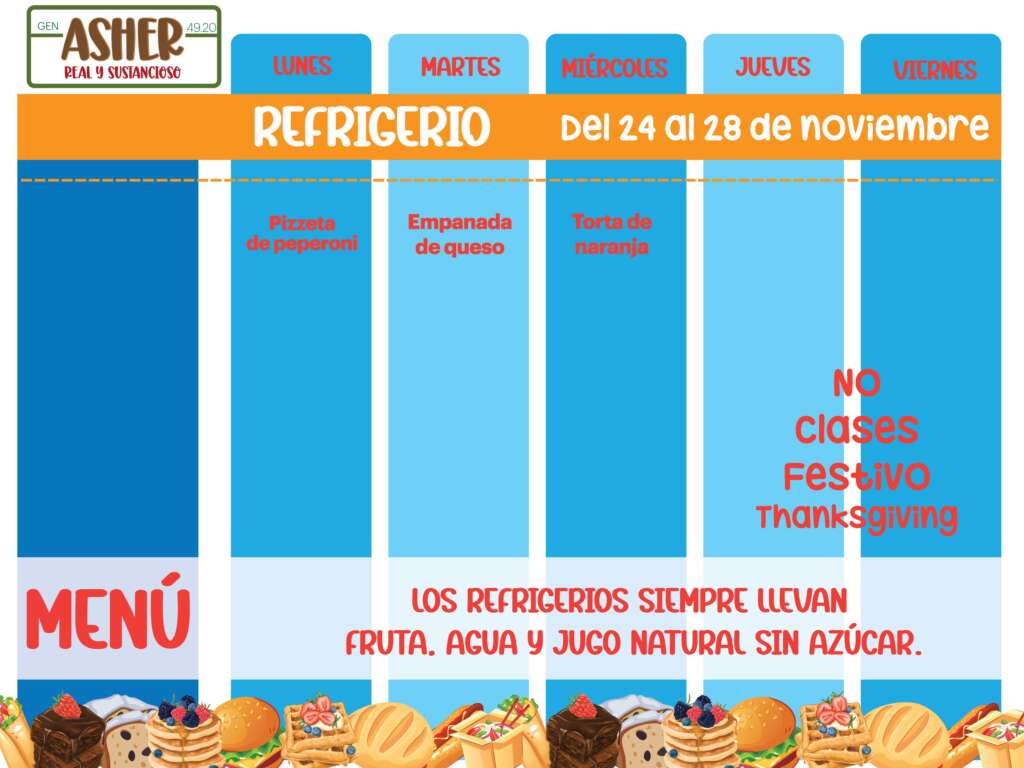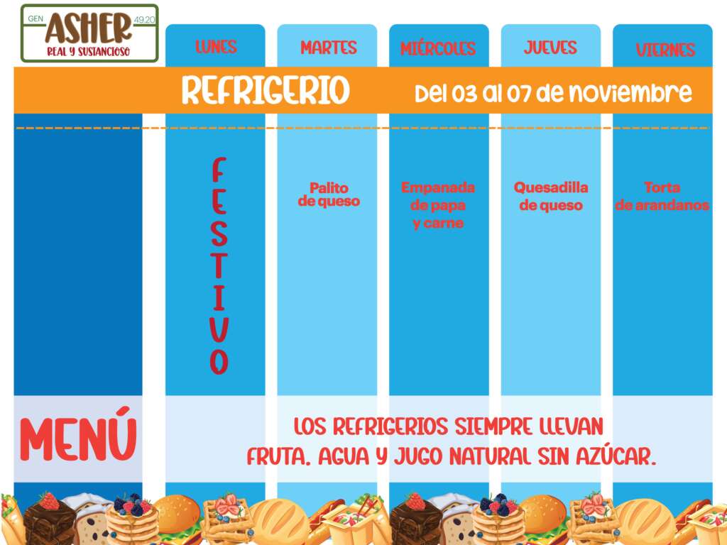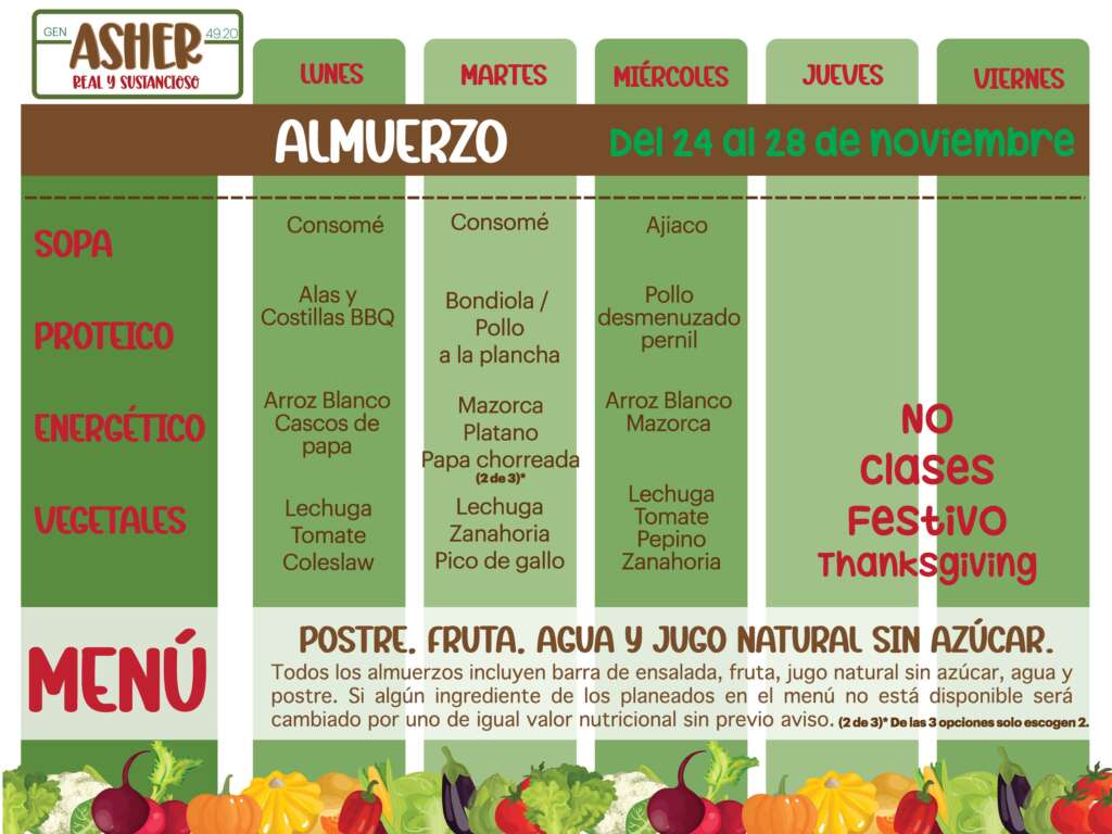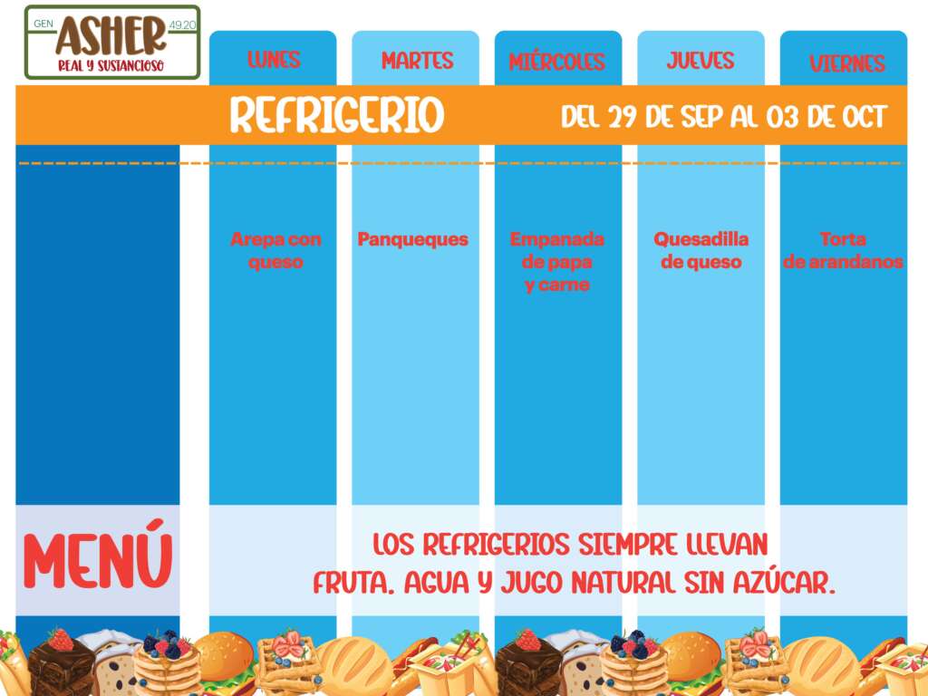 ECA’s contracted provider for food service is ASHER Productos Alimenticios S.A.S.